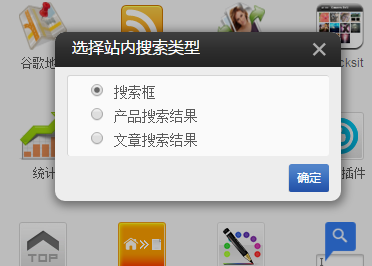 ①.添加站内搜索插件,选择搜索框,点击确定。